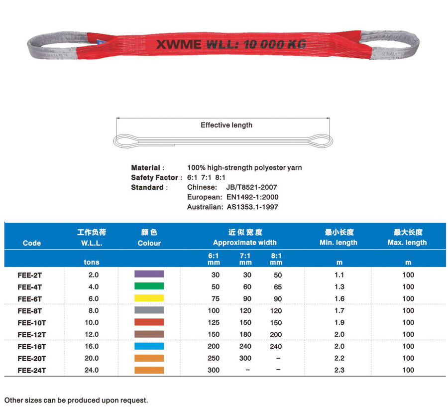 Synthetic fabric lifting belt (hereinafter refers to lifting belt) is a kind of soft lifting belt made of non-metallic materials and successor production of wire rope and chain in the lifting industry which is lighter and more convenient than similar metal and can solve the difficult problems such as large tonnage but small lifting space in the lifting process. The lifting belt is light, convenient and durable. Additionally, it has a noticeable earthquake effect, non-conductive performance, anti-corrosion and protects hanging items from being scratched. Many fracture experiments proved that lifting belt almost inflict zero reverse damage to metallic rope chain. The lifting belt adopts international standard colors to distinguish carrying tonnage. In the application process, carry tonnage can be distinguished by lifting belt jacket color if label on lifting belt wears Synthetic fabric lifting belt was used worldwide in the early days and has an application history spanning over fifty years. After being popularized in China for more than twenty years, it has gradually replaced wire rope rigging and chain rigging in many industries.
