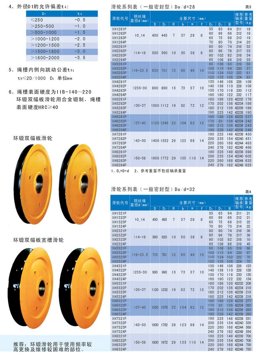 滑車按輪數(shù)的多少分為單門滑車,雙門滑車和多門滑車。按滑車與吊物的連接方式可分為吊鉤式滑車,鏈環(huán)式滑車,吊環(huán)式滑車和吊架式滑車四種。一般中小型的滑車多司于吊鉤式、鏈環(huán)式和吊環(huán)式,而大型滑車采用吊環(huán)式和吊梁式。按輪和軸的接觸不同可分為輪軸間裝滑動(dòng)軸承及滾動(dòng)軸承兩種。按夾板是否可以打開來(lái)分,有開口滑車和閉口滑車。開口滑車的夾板是可以打開的,便于裝繩索,一般的都是單門滑車,它常用于扒桿底腳處作導(dǎo)向滑車用?;嚢词褂玫姆绞讲煌址譃槎ɑ嚭蛣?dòng)滑車。使用方便,用途廣泛,可以手動(dòng),機(jī)動(dòng)。主要用于工廠、礦山、農(nóng)業(yè)、電力、建筑的生產(chǎn)施工,碼頭、船塢、倉(cāng)庫(kù)的機(jī)器安裝,貨物起吊等。
