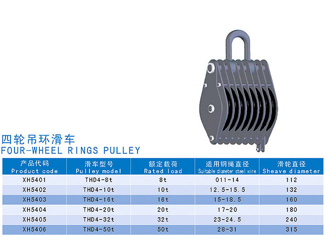 滑車按輪數(shù)的多少分為單門滑車,雙門滑車和多門滑車。按滑車與吊物的連接方式可分為吊鉤式滑車,鏈環(huán)式滑車,吊環(huán)式滑車和吊架式滑車四種。一般中小型的滑車多司于吊鉤式、鏈環(huán)式和吊環(huán)式,而大型滑車采用吊環(huán)式和吊梁式。按輪和軸的接觸不同可分為輪軸間裝滑動軸承及滾動軸承兩種。按夾板是否可以打開來分,有開口滑車和閉口滑車。開口滑車的夾板是可以打開的,便于裝繩索,一般的都是單門滑車,它常用于扒桿底腳處作導向滑車用。滑車按使用的方式不同又分為定滑車和動滑車。使用方便,用途廣泛,可以手動,機動。主要用于工廠、礦山、農(nóng)業(yè)、電力、建筑的生產(chǎn)施工,碼頭、船塢、倉庫的機器安裝,貨物起吊等。